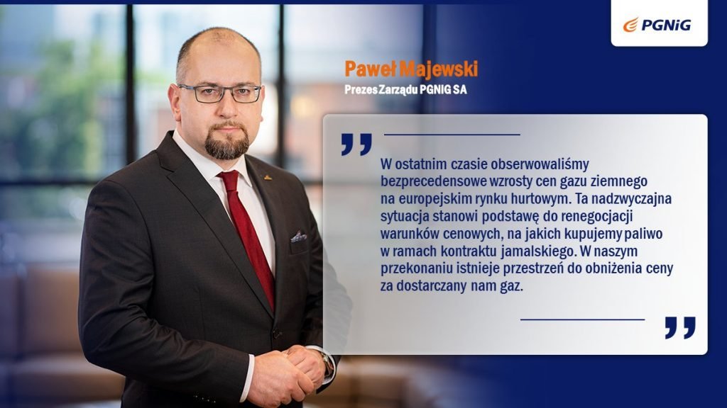 W ostatnim czasie obserwowaliśmy bezprecedensowe wzrosty cen gazu ziemnego na europejskim rynku hurtowym. Ta nadzwyczajna sytuacja stanowi podstawę do renegocjacji warunków cenowych, na jakich kupujemy paliwo w ramach kontraktu jamalskiego. W naszym przekonaniu istnieje przestrzeń do obniżenia ceny za dostarczany nam gaz.