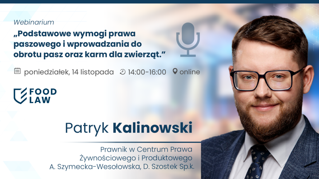 [WEBINAR] Podstawowe wymogi prawa paszowego i wprowadzania do obrotu pasz oraz karm dla zwierząt (14 listopada, godz. 14:00-16:00) https://fundacjardhub.buzz/zywnosc/podstawowe-wymogi-prawa-paszowego-i-wprowadzania-do-obrotu-pasz-oraz-karm-dla-zwierzat/ Tue, 07 Nov 2023 09:22:09 +0000 https://fundacjardhub.buzz/?p=2797 Webinar odbędzie się 14 listopada, godz. 14:00-16:00 i jest przeznaczony dla wszystkich przedsiębiorców, który zamierzają zacząć lub już prowadzą działalność biznesową w sektorze pasz oraz karmy dla zwierząt. Zostaną na nim omówione podstawowe wymogi prawne dotyczące rozpoczęcia takiej działalności (w tym rejestracyjne), przepisy dotyczące bezpieczeństwa, jakości oraz znakowania takich produktów, a także odpowiedzialności prawnej za ich wprowadzanie do obrotu. Program webinaru obejmuje: Link do transmisji: https://centrumprawazywnosciowego.clickmeeting.com/podstawowe-wymogi-prawa-paszowego-i-wprowadzania-do-obrotu-pasz-oraz-karm-dla-zwierzat