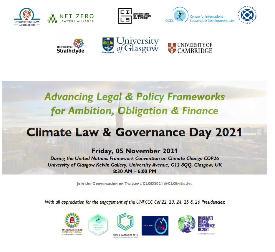Pełny kształt panelu w ramach konferencji Climate Law and Governance Day 2021 w ramach Szczytu Klimatycznego COP 26, która miała miejsce 5 listopada 2021 r. w Glasgow.