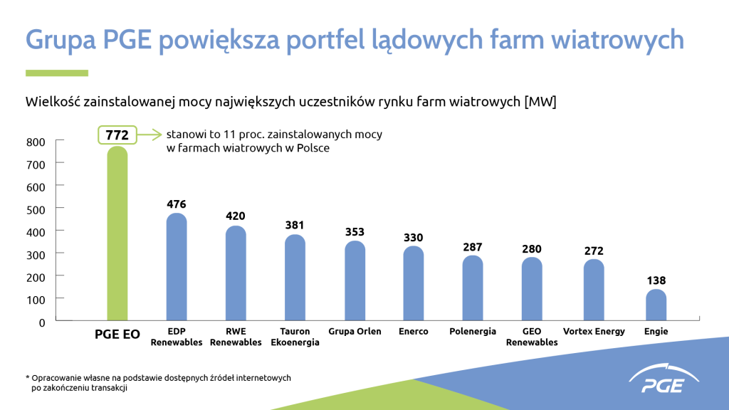 Transakcja jest elementem realizacji Strategii Grupy PGE do 2030 roku, która zakłada, że w 2030 r. Grupa PGE będzie posiadać 1,7 GW mocy w lądowych farmach wiatrowych, co zostanie osiągnięte również poprzez akwizycje. Długoterminowym celem strategicznym jest osiągnięcie neutralności klimatycznej Grupy PGE do 2050 roku oraz dostarczanie 100 proc. zielonej energii dla klientów. Realizacja inwestycji w odnawialne źródła energii oraz akwizycje w tym obszarze przyczynią się do realizacji tego celu.