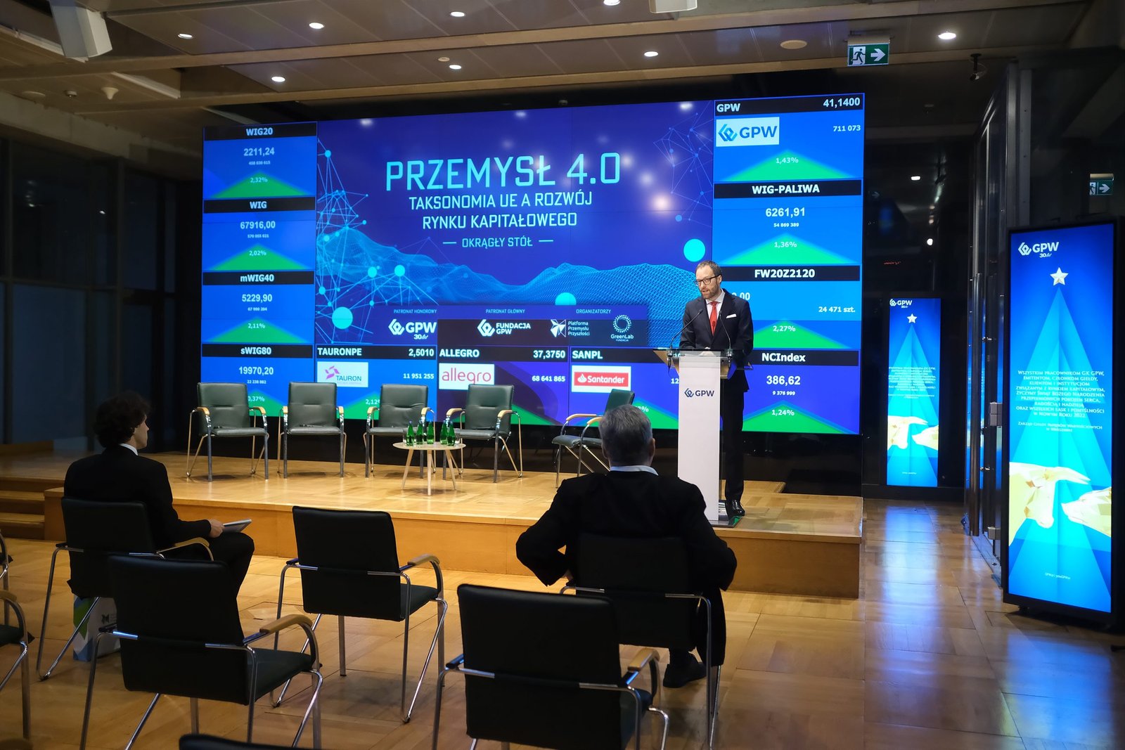 16 grudnia na Sali Notowań Giełdy Papierów Wartościowych w Warszawie odbył się Okrągły Stół „Przemysł 4.0 – Taksonomia UE a rozwój rynku kapitałowego” organizowany przez Fundację Centrum Nowych Technologii GreenLab wraz z Platformą Przemysłu Przyszłości. Patronat Honorowy nad wydarzeniem objęła Giełda Papierów Wartościowych w Warszawie, a Patronat Główny Fundacja GPW.