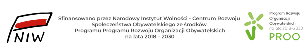 „Zadanie zostało sfinansowane ze środków otrzymanych z NIW-CRSO w ramach Programu Rozwoju Organizacji Obywatelskich na lata 2018-2030 PROO”.