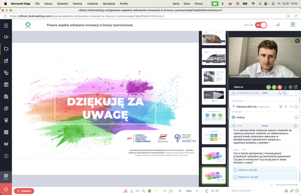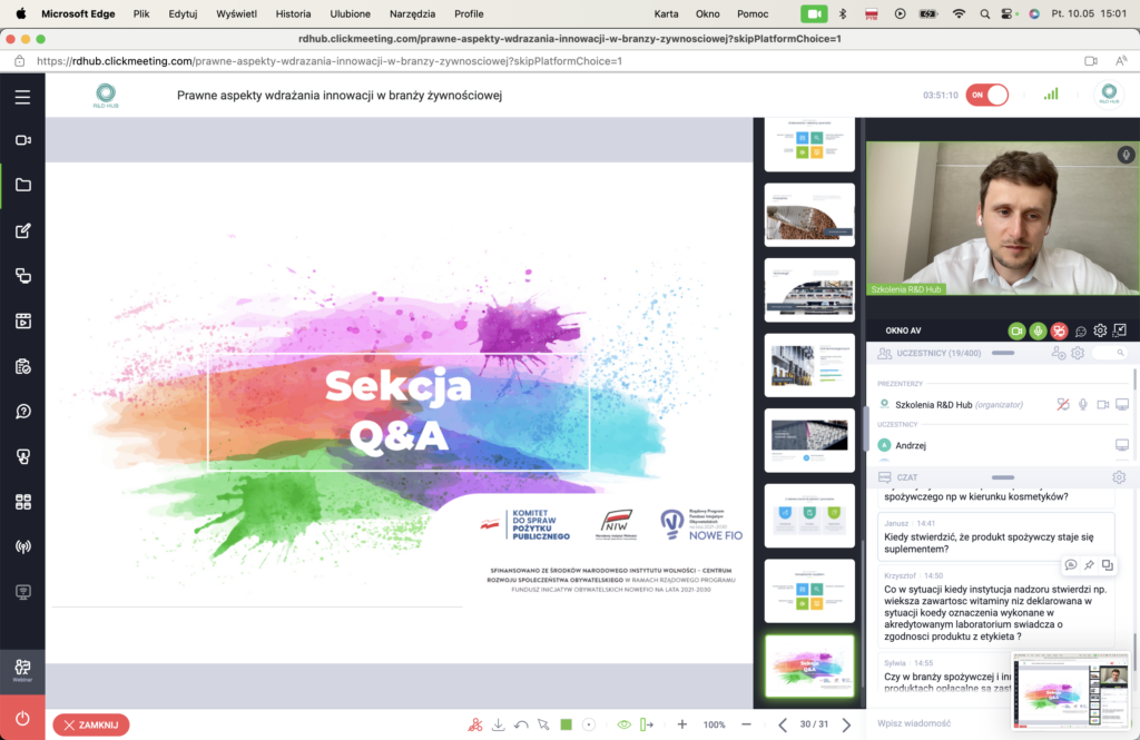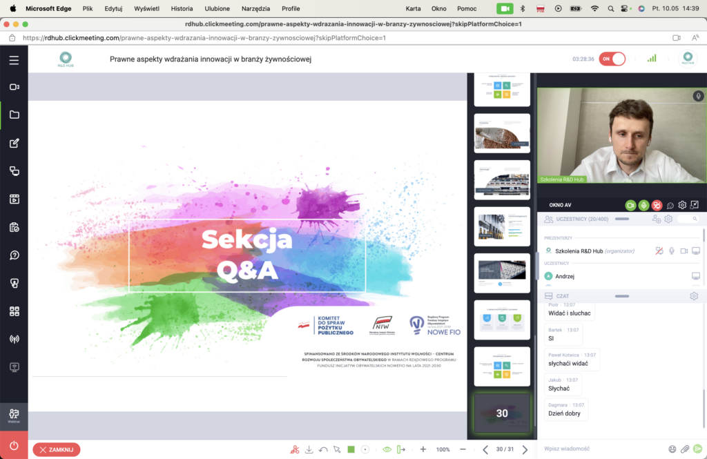 W webinarium wzięło czynny udział ok. 22 uczestników reprezentujących 20 podmiotów z terytorium całego kraju. W sekcji Q&A udzielano odpowiedzi na przedstawione pytania, a pełne opisy zostaną udostępnione w stosownym raporcie z webinarium