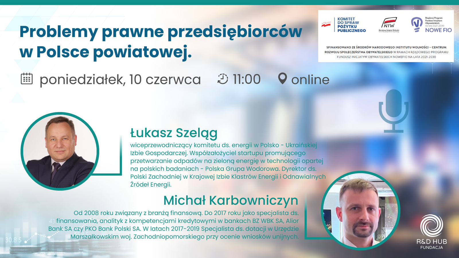 Zapraszamy serdecznie na webinar „Problemy prawne przedsiębiorców w Polsce powiatowej”, który odbędzie się 10 czerwca o godzinie 11.00.